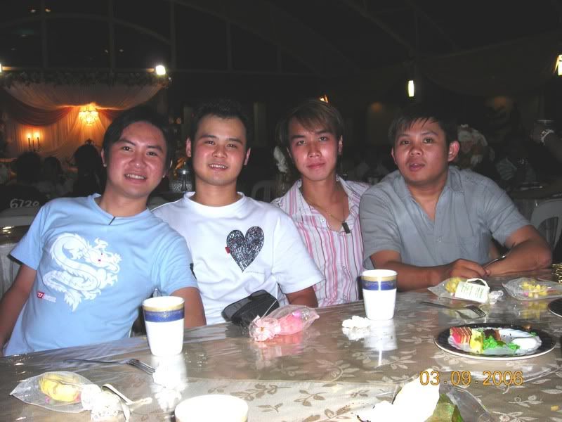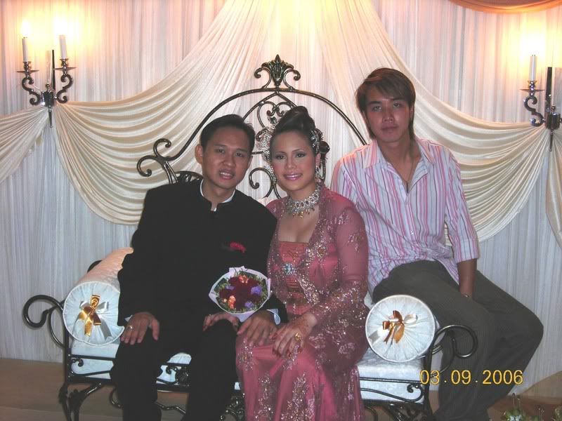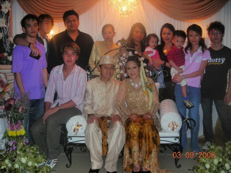 Lately been very busy with work. All the stupid reports & assignments are like gonna due super duper soon. Feeling so stressed up & fucked up!!! Like nothing been's going rite for me like tt. Back at home also encountering alot of problems with my family. Been quarrelling almost every other day. Aaaarrrgghhzzzzzz!!!! Gotta find a way to get hold of myself. Can't afford to let all this minor setbacks bring me down. Anyway, lately been hanging out often at color zone. Quite like the place, feels very comfortable when i'm there, or izit cos of the companionship? Beats me too. Nowadays, BQ like becoming my hang out place alr.. Sounds so wierd, like machiam i'm one of those ah bengs like tt. Ha! Anyway, just hope the events in my life would take a better change for the good in the near future. Cos come to think of it, even my beloved Man Utd also lost to Arsenal. And bearing in mind this was a game which they should haf won quite easily. Down to bad luck or due to them playing badly? I would prefer to think of the latter one. Just hope this would be a one off match & tt they get back to their winning ways like the previous few matches in which they won all of it. Btw, had a well deserved rest 2 nite's ago. Went to chill-out at this place called Giraffe after which went to K box for some ktv session. Lately been hooked onto singing K, makes me feel puzzled too cos my voice not really cut out for singing. To all guys who intends to bring their gfs or any gals to a nice place for dinner or drink, i would suggest going to Giraffe. Not tt i'm helping them to advertise or wat, but it's really a nice, cosy place & the ambience is quite romantic too. But of cos, the company which ya with also have to appreciate this kind of surroundings if not all your efforts would go down the drain. (Sounds familiar rite rabbit) Anyway, something strange happened during the ktv session tt made me felt surprised when i went back home & thought over it carefully. Cos it's been such a long time since i've experienced tt kind of stuffs(feelings involved). Anyway, whatever it is, just let nature takes its course. Oh ya, came back nursing plentiful of injuries too, courtesy of some idiot. U know who u are! Bleahz! A few days ago received news from Sunday tt she was finally coming back to s'pore. Was quite happy & eager to get to see her but tt silly gal somehow or rather slip away from my grasp once more cos she came back home for barely a day before dropping a bombshell on me again tt she was going overseas for a few weeks. Need to make an appointment in advance in order to get to meet up with her. Like she's doing big business like tt lah! Oh, and after soooo long, finally got hold of news of Stella. In fact just talked to her, though thru msn, but at least something. That silly gal, changed her bloody hp no. but forgotten to let me know. Come to think of it, seems so stupid of me to sms a no. tt was not in use alr! But glad tt she's finally fine now considering how much problems she used to encounter in the past. Lastly, signing off here with pics from my beloved sister Novi's wedding. Hope her marriage would be a everlasting, happy & blissful one. "Congratulations Novi & Hubby"