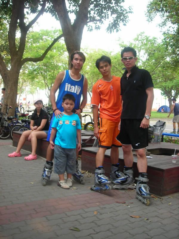 Had a very enjoyable weekend, did some stuffs which i've not done for a long time already. Firstly, settled something on saturday which i've been concerned for quite some while already, hence to finally get the load off my mind really felt great. Next, i really enjoyed the outing with Jesper & co. at East Coast on Sunday. Blading & swimming at the sea, something which i've not done in ages. And of cos, playing with Darren. Omg, tis boy is just soooo cute lah! & very obedient too! Both Jesper & i taught him how to swim, but it was really quite difficult as he's afraid of water. Tis boy really reminded me of my past, as i was also chubby & scared of water when i was young. Looking back at my photos, used to cry whenever my dad brought me down for a swim, same like what Darren did, crying & begging to go back on shore. Anyway, how ironic rite tat i ended up becoming a qualified lifeguard when i was so afraid of swimming in the past. Well, almost spent the whole entire day there. Freaking shagged out boy, especially as we bladed for quite a distance. Legs all cramped up. Must be cos all of us were old already. Haha. In the evening went for some delicious laksa at where else, Katong! Though was nice, but too little, unable to fill up our hungry tummies, thus, we went for more food hunting at Katong, something like the taiwanese variety show "shi zi lu kou" like tat. Trying different types of food in the process. Yummy! In the end, i suggested playing a few games of snooker before heading home. Brought them to tis new place beside Katong Mall, called Snookerium. Everything was new bout tis place, the tables, the balls, the cues etc.(rare thing in s'pore) Damn shiok! Cos have not played on new snooker tables for a very long time already. Bloody hell, Tong Long said he had not played for a few yrs already, but ended up being so "zun kar", winning both Jesper & me. Haiz. Kena "cheated" yet again. Ha! Really enjoyed tis outing at East Coast with them. Will be planning more of it in the near future as it's really fun hanging out with tis group of friends. Some pics which we took: