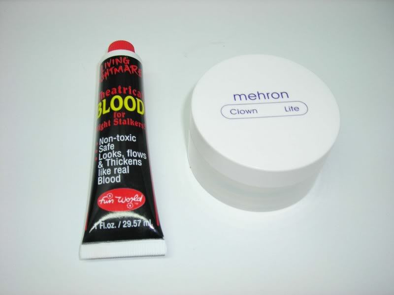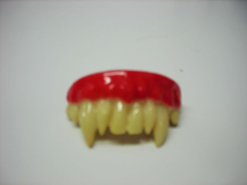 The tube of fake blood & face paint. Bloody hell, this small container of paint cost me a bomb as it's used by those professionals due to the reason that the paint would last even after sweating profusely.The vampire's fangs which i finally decided on. This was the scariest fangs but also 1 of the more expensive piece.