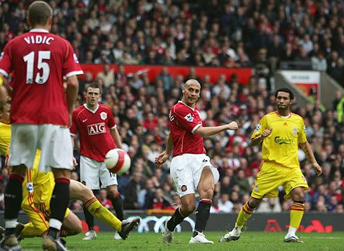 A few hrs down the road later would be the Carling Cup tie between my beloved Man Utd & Crewe. Can't wait to catch the match. Well, lately the Red Devils have been firing on all cylinders, been performing above expectations, especially last sun when they defeated Loser-pool by 2 goals courtesy of Mr 500 match man Scholesley & Rio Ferdinand, who scored a striker type of goal for a big defender. Well done Man Utd! Everyone played well in that match, though i've gotta admit that liverpool were shit that day. Saha was a constant threat, Carrick & Scholes reigned supreme in the midfield contest & of cos not to mention Fletcher, the player whom i dislike most in Man Utd, but who played his best game for the Red Devils. Some of the pics of that memorable match: