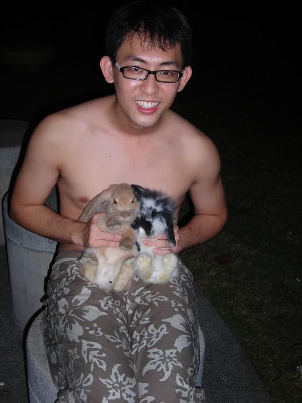 Over at East Coast, met up with Edmund, Edwin & co. Did not know that they were blading there together too as my silly sista did not tell me anything at all. Well, as it turned out, that blading session was one to forget as something very unlucky befalled on me. I injured myself, spraining my ankle. I mean wtf rite, coming all the way to East Coast to get myself injured. Worst of all, i had only started blading for like less then 10 mins! Freaking unlucky. I know some of u might be wondering to yourself how in the world did i get myself injured within such a short time rite? Well, it was like this: i was blading down the short slope & looking for Edwin & Edmund whereabouts as i wanted to leave my belongings over at their car when someone suddenly banged into me, therefore causing me to lose balance & twisting my left foot. Thankfully the person who banged into me was a lady if not i would surely had blown my top. She kept apologising to me as she was bout to fall herself hence decided to grab onto me as i was the closest to her. Haiz.. Sometimes it really does not pay to be a hero. Take that cue from me. Haha. After blading, we went to prepare the stuffs for the bbq which they had planned in advance. Well, this was again another sort of surprise for me. Anyway, it's been a long time since i went for these type of bbq party hence decided to join in the fun together although i was bit embarressed as i did not bring any food nor drinks. U must understand that this was a last minute type of decision for me, not that i was being "gian peng" or what. Ha! At least, at the end of the day, i did contributed by starting the fire for the bbq & helping to bbq the food for them. We stayed there BBQing, talking cock & stuffs till around 3 plus in the morning before deciding to make a move. Partly due to the slight drizzle too which made up our minds to pack up & leave earlier if not i really had forsee us staying there till sunrise. Oh ya, Benny's rabbits were super cute boy! How i wish i had them at home as pets. Didn't knew that rabbits were that cute. Hmmm.. Maybe after today would consider adding a rabbit to my collection of pets in the future. Haha! Some of the pics below which i took at the bbq though there aren't any pics of me as i was quite atrocious. Haha! Enjoy guys!