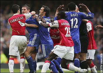 If that royal rumble in injury time wasn't enough, we also witnessed Chelsea captain John Terry being kicked in the head while trying to win a header from a Lampard corner. He was subsequently KO'ed and till now, still has NO recollection of the incident. In case you're thinking that it's just a one-off incident, the English FA just fined Middlesbrough and Tottenham for a similar punch-up during a match last December. A dozen players were involved in that fracas, with George Boateng and Didier Zokora sent off for their part in it. On Feb 7, a friendly match between Queens Park Rangers and the Chinese Under-23 squad also turned into a free-for-all. I'm not suggesting that football be all pansy wussy like some other more 'genteel' sport. A real football fan enjoys the drama and fireworks as much as sterling footwork and goals. But to turn the game into a bar brawl is just too much! Will having more stringent refereeing standards and heavier fines be able to stop the players and teams any longer? Does boorish violence belong in The Beautiful Game?