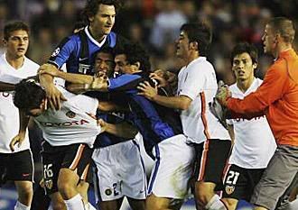 Looking back at wednesday's match between Inter and Valencia where a massive brawl occured after the match, i suddenly realised that there's an alarming need for violence to be curbed around the world of soccer, after the recent spate of events. Remembered the Carling cup fracas between Arsenal and Chelsea just a fortnight ago, and the friendly match between Queens Park Rangers and the Chinese olympic team that went awfully wrong, leaving a chinese player with a broken jaw. Just what exactly causes these cash rich superstars to lose their heads in a moment of madness and go around with their dirty fights and unsporting actions in front of millions of viewers that are watching them live on tv?