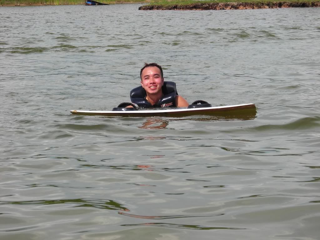 The triple knee boarding attempt with Ben and Alex. I'm at the far left.